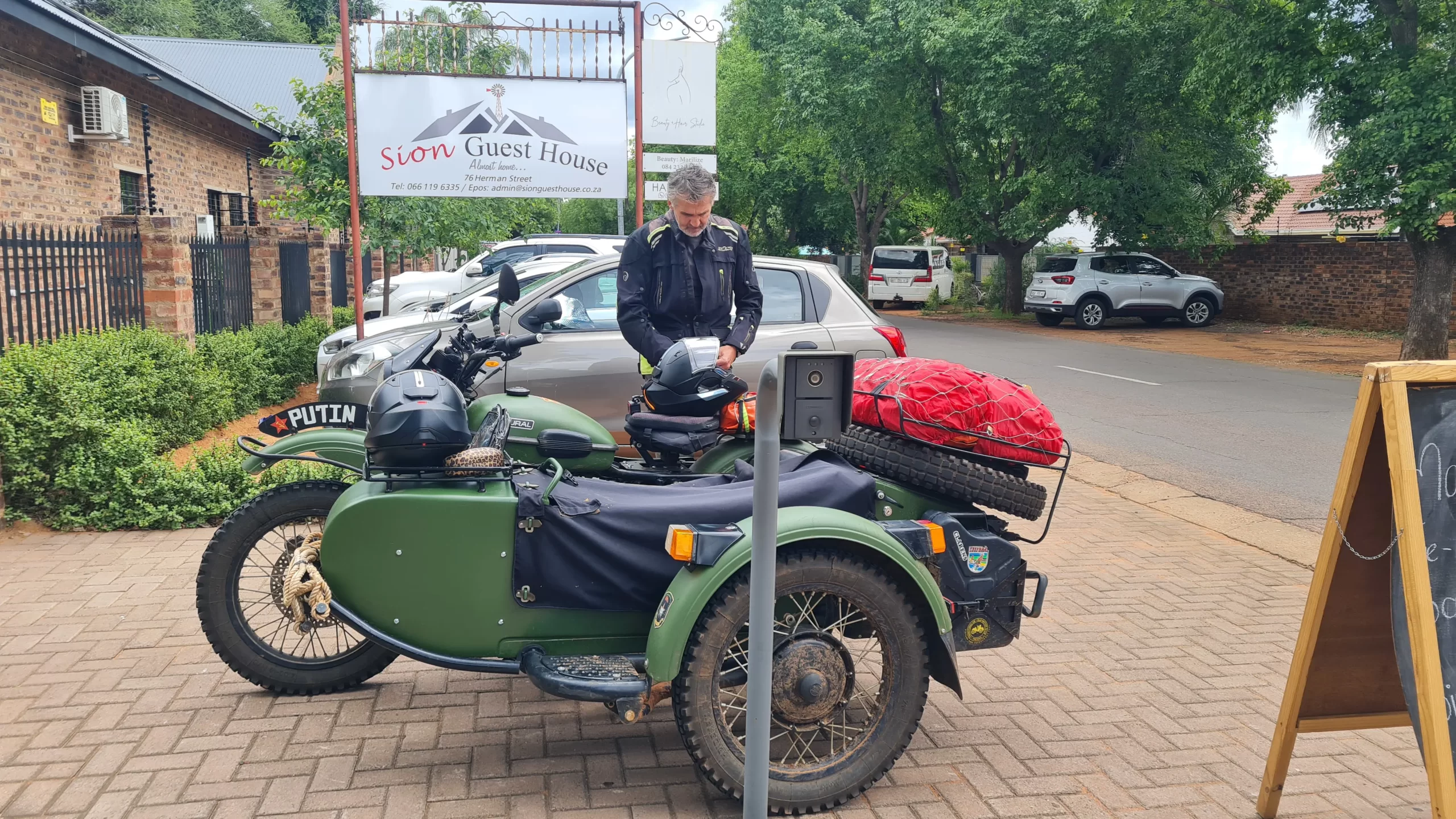 While unpacking, I noticed why Putin had been extra noisy and a bit sluggish today: he’d lost an exhaust manifold bolt. Tomorrow is a rest day, so I’ll be diving into my toolkit to find a replacement. With only 170km left until we’re home, I want to make sure we don’t have a “wha wha whaaaa” mechanical failure right at the finish line!